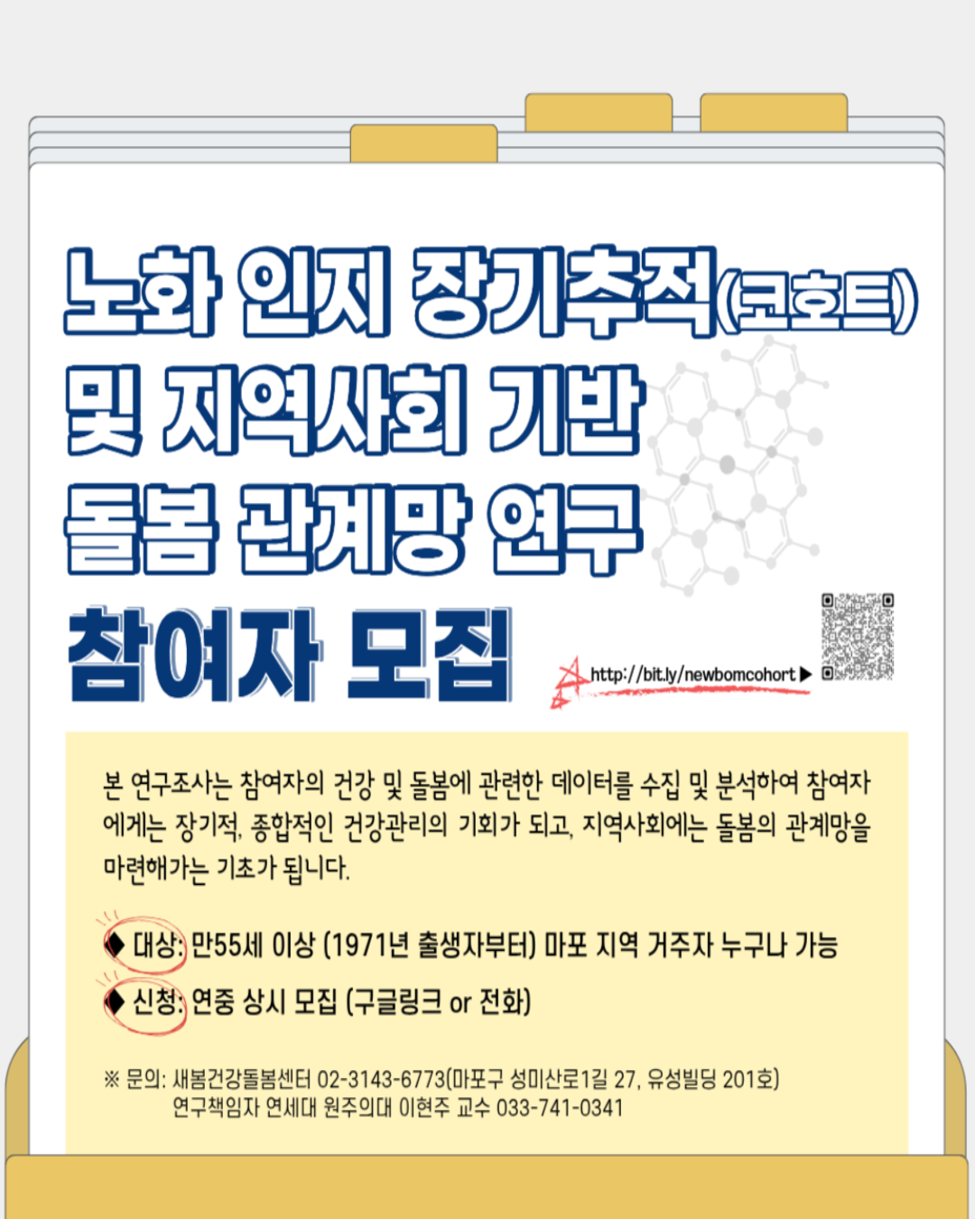 [노화 인지 장기추적(코호트) 및 지역사회 기반 돌봄관계망 연구 참여자 신규 모집]